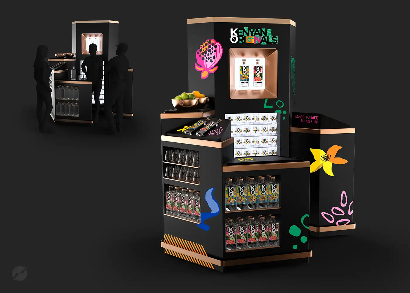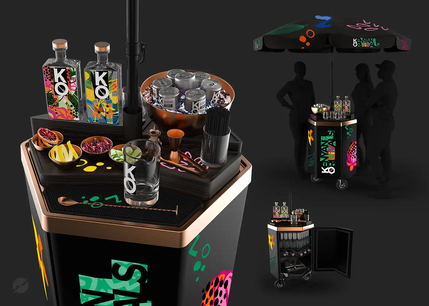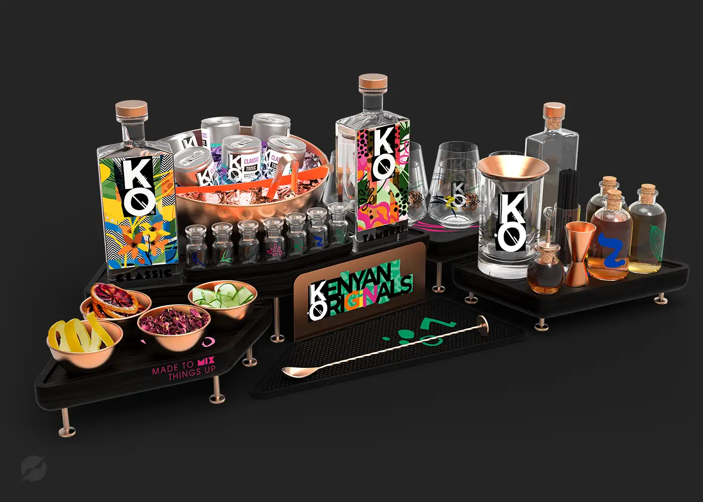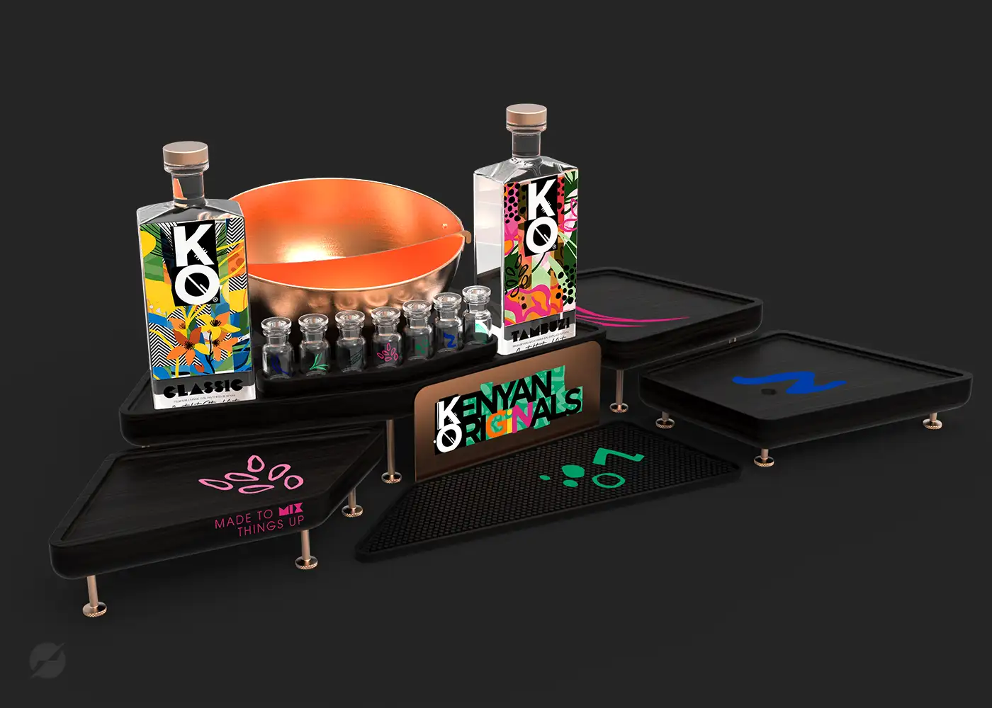 This structural ecosystem defines the high-energy presence of the Kenyan Originals Cider range in the on-trade environment. The project features a disruptive, tiered bottle glorifier and a custom ice bucket, both engineered to maximize brand recognition in fast-paced bar settings. The glorifier utilizes a brand inspired geometry to create a monumental stage for the vibrant labels, while the ice bucket integrates heavy-duty handles and built-in openers, designed for intense professional use. By merging bold branding with functional durability, the collection translates the brand’s urban soul into a series of iconic physical touchpoints that dominate the back-bar landscape..