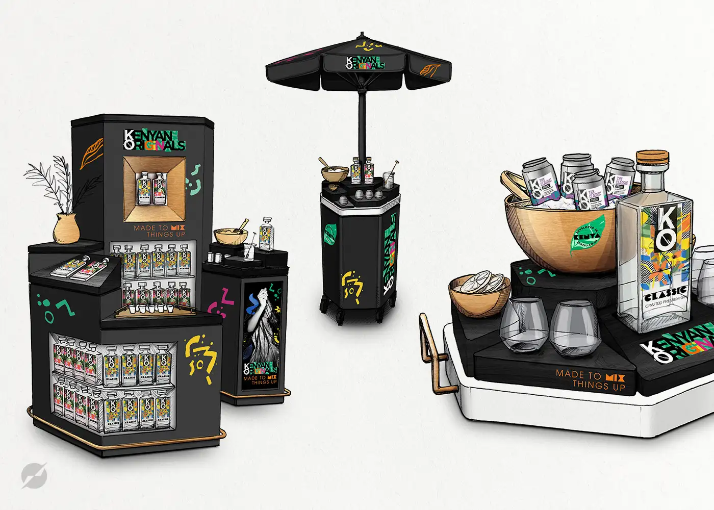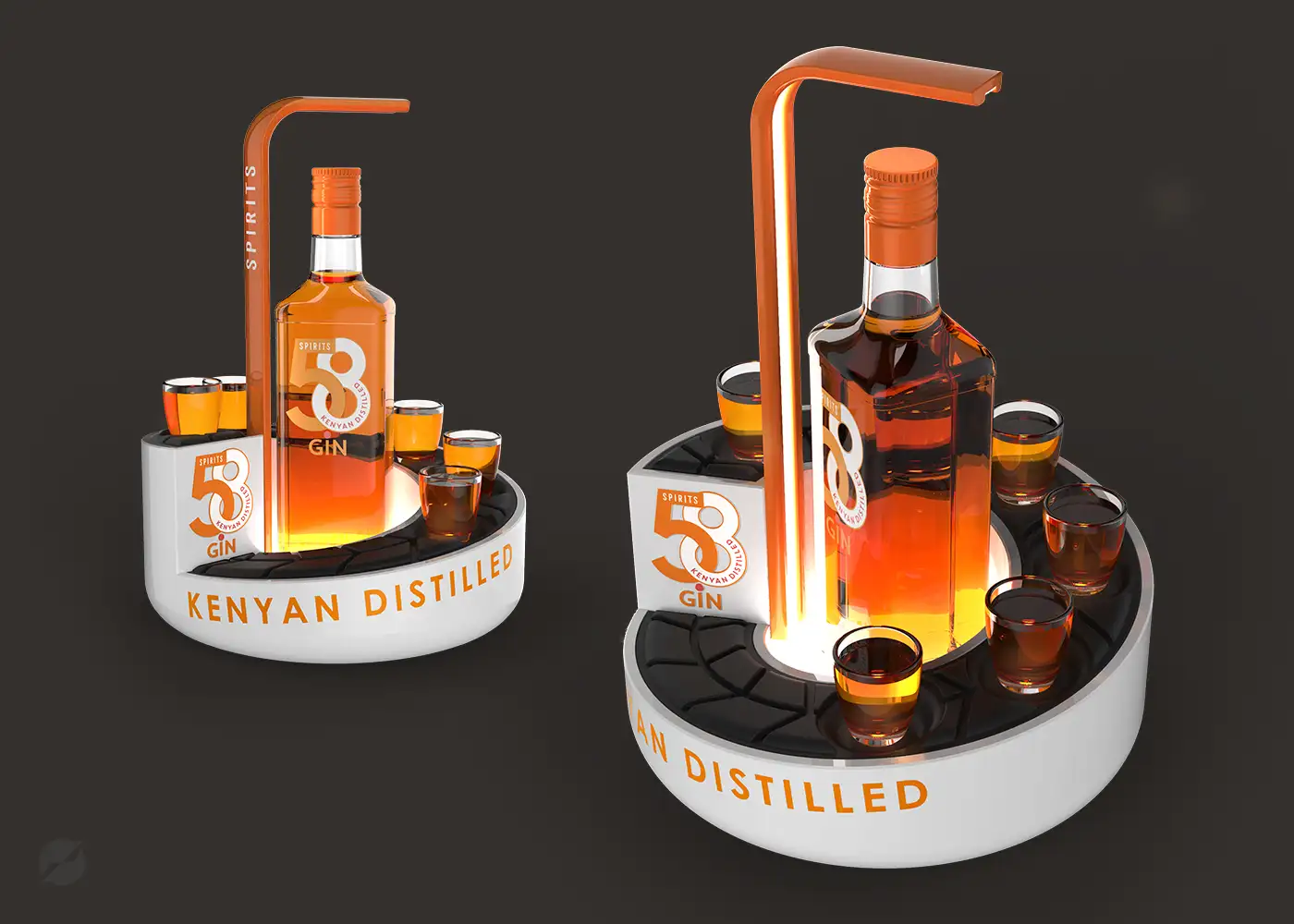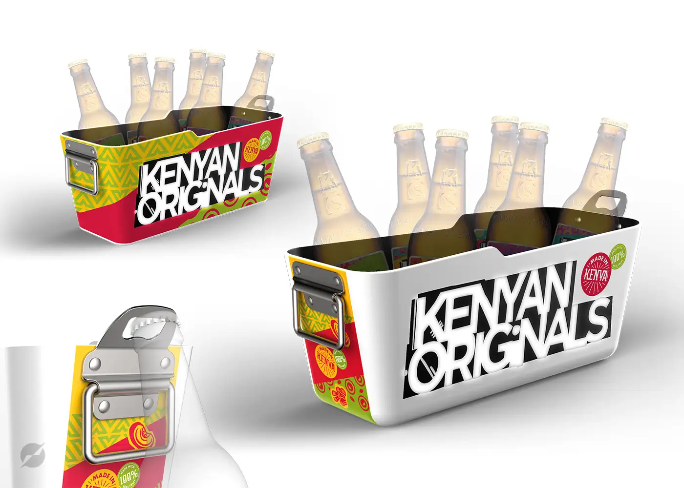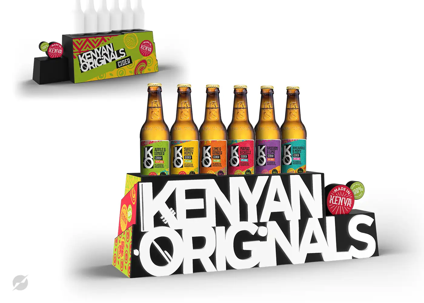 This structural ecosystem defines the high-energy presence of the Kenyan Originals Cider range in the on-trade environment. The project features a disruptive, tiered bottle glorifier and a custom ice bucket, both engineered to maximize brand recognition in fast-paced bar settings. The glorifier utilizes a brand inspired geometry to create a monumental stage for the vibrant labels, while the ice bucket integrates heavy-duty handles and built-in openers, designed for intense professional use. By merging bold branding with functional durability, the collection translates the brand’s urban soul into a series of iconic physical touchpoints that dominate the back-bar landscape..