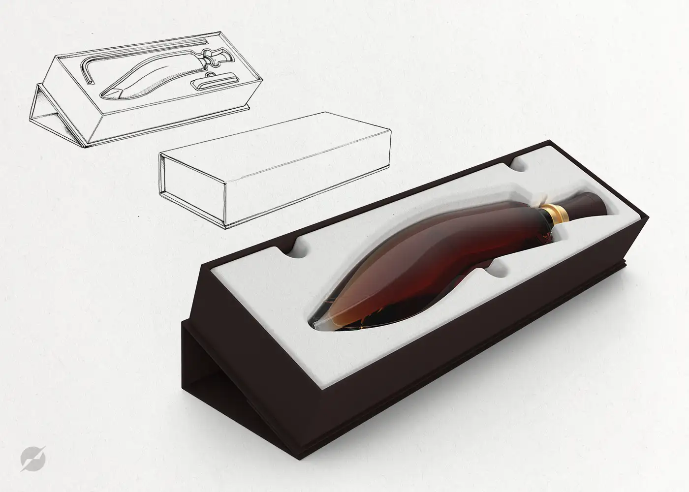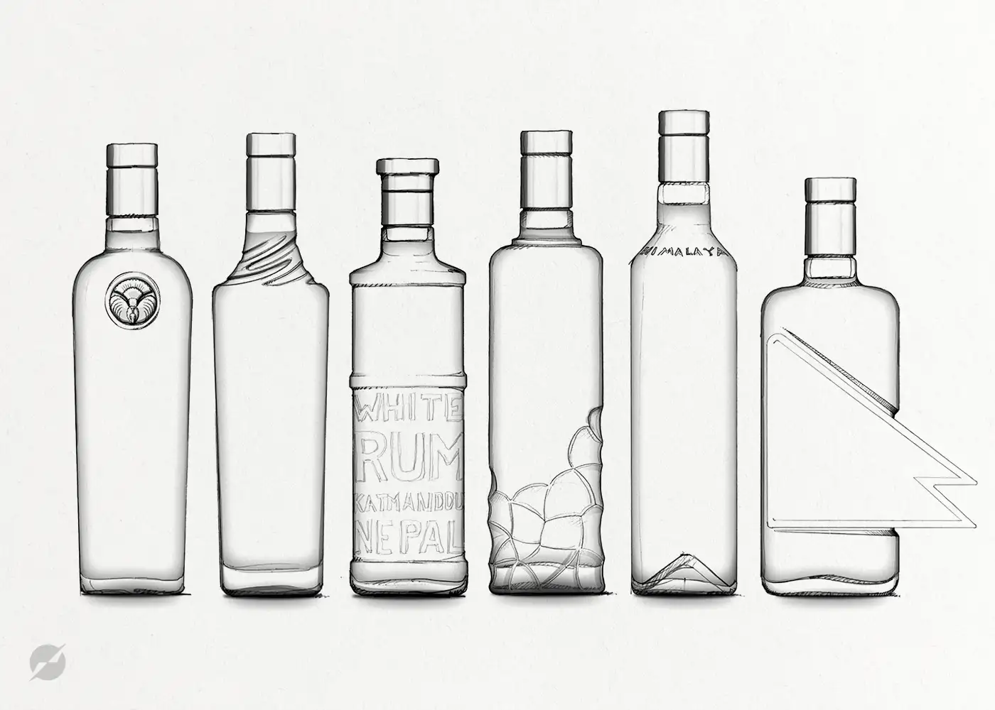 A sculptural tribute to Nepalese heritage. The « Coronation » edition is a high-end structural feat—an iconic, knife-shaped vessel that pushes the boundaries of glass molding. This project involved the development of a complex, asymmetrical bottle inspired by the traditional Khukri blade, integrated into a bespoke structural stand and premium presentation box. The challenge lay in merging ceremonial storytelling with technical precision, creating a disruptive centerpiece that serves as both a luxury spirit and a cultural artifact.