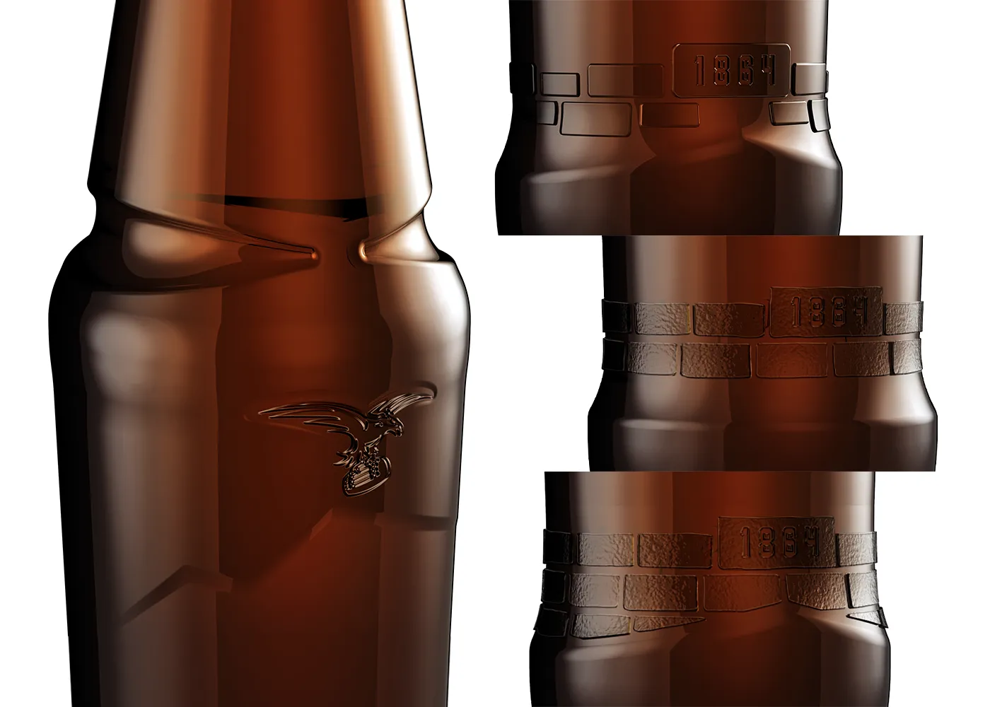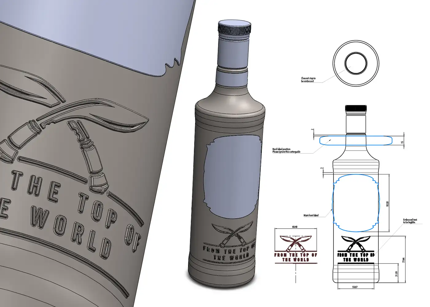 A structural tribute to the historic Alivaria brewery, translating the industrial soul of the site into a premium glass silhouette. The design features a distinctive embossed brick pattern at the base—a subtle architectural reference that presented significant technical challenges in glass molding and release. This project required high-precision CAD engineering to balance the intricate textured detail with industrial high-speed production requirements, resulting in a tactile, grounded bottle that honors the brand’s 19th-century foundations.