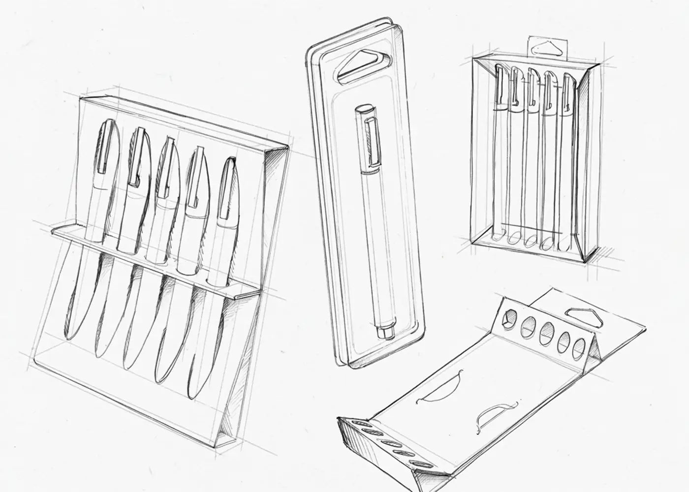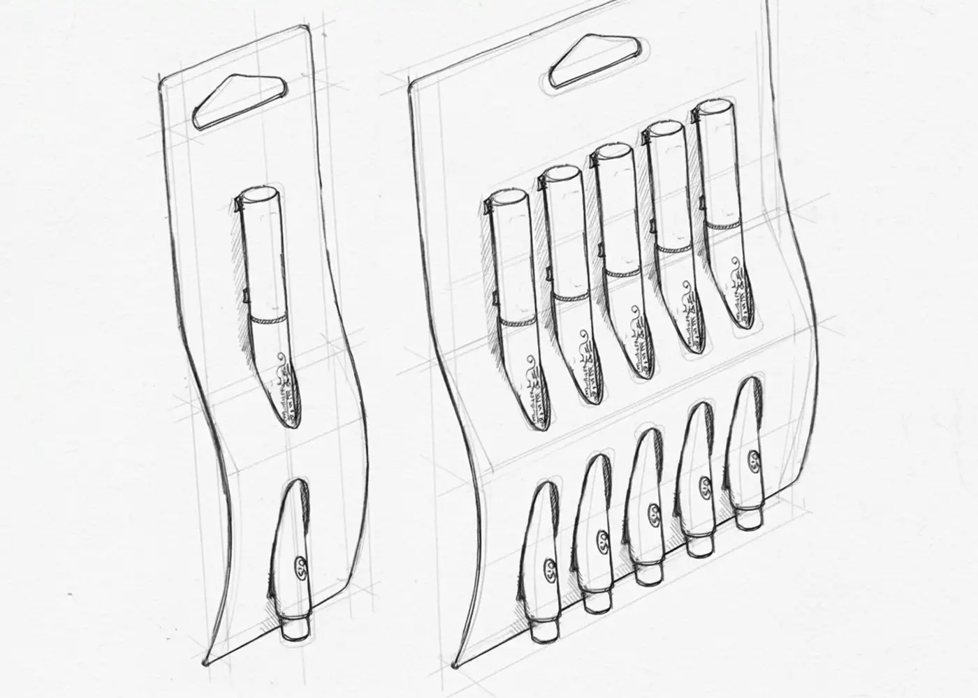 A masterclass in structural reduction—stripping away the superfluous to celebrate the instrument. Developed for Lewis Moberly through intuitive sketching and physical mockups, this design prioritizes a minimal, single component waste architecture, eliminating adhesives and excess material. The result is a sleek, self-supporting frame that transitions seamlessly from a protective pack to an elegant desktop display.
