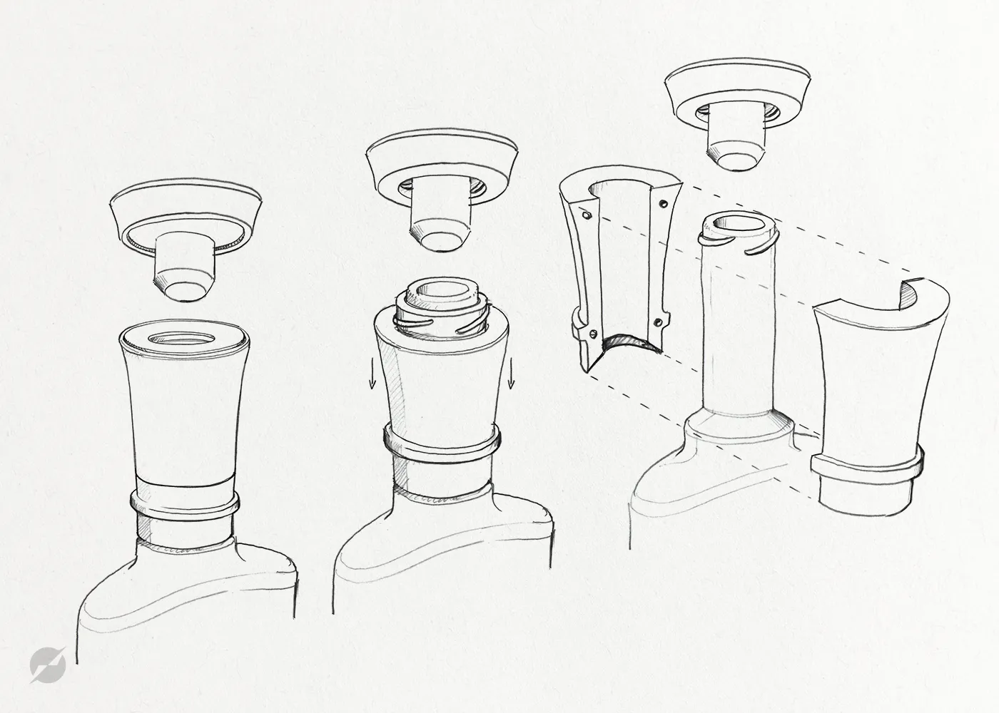 A structural tribute to the brand’s Nepalese origins—subtly reinterpreting the geometry of traditional prayer wheels. Designed for the country’s first rice-based vodka, the bottle features a clean, rotating silhouette that allows light to refract through the embossed glass messaging. This project balances ultra-modernity with a spiritual heritage, using technical precision in CAD and specification to create a high-end, tactile experience that celebrates Himalayan purity.