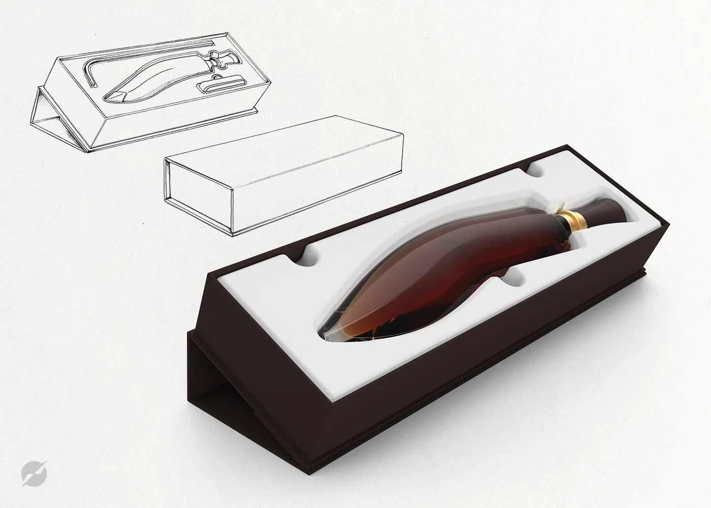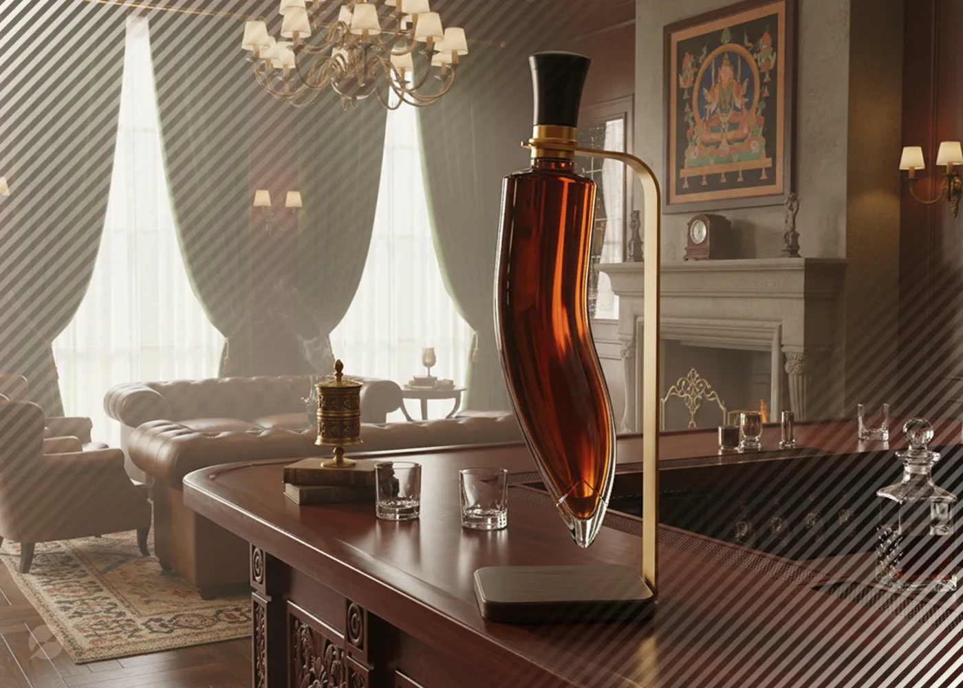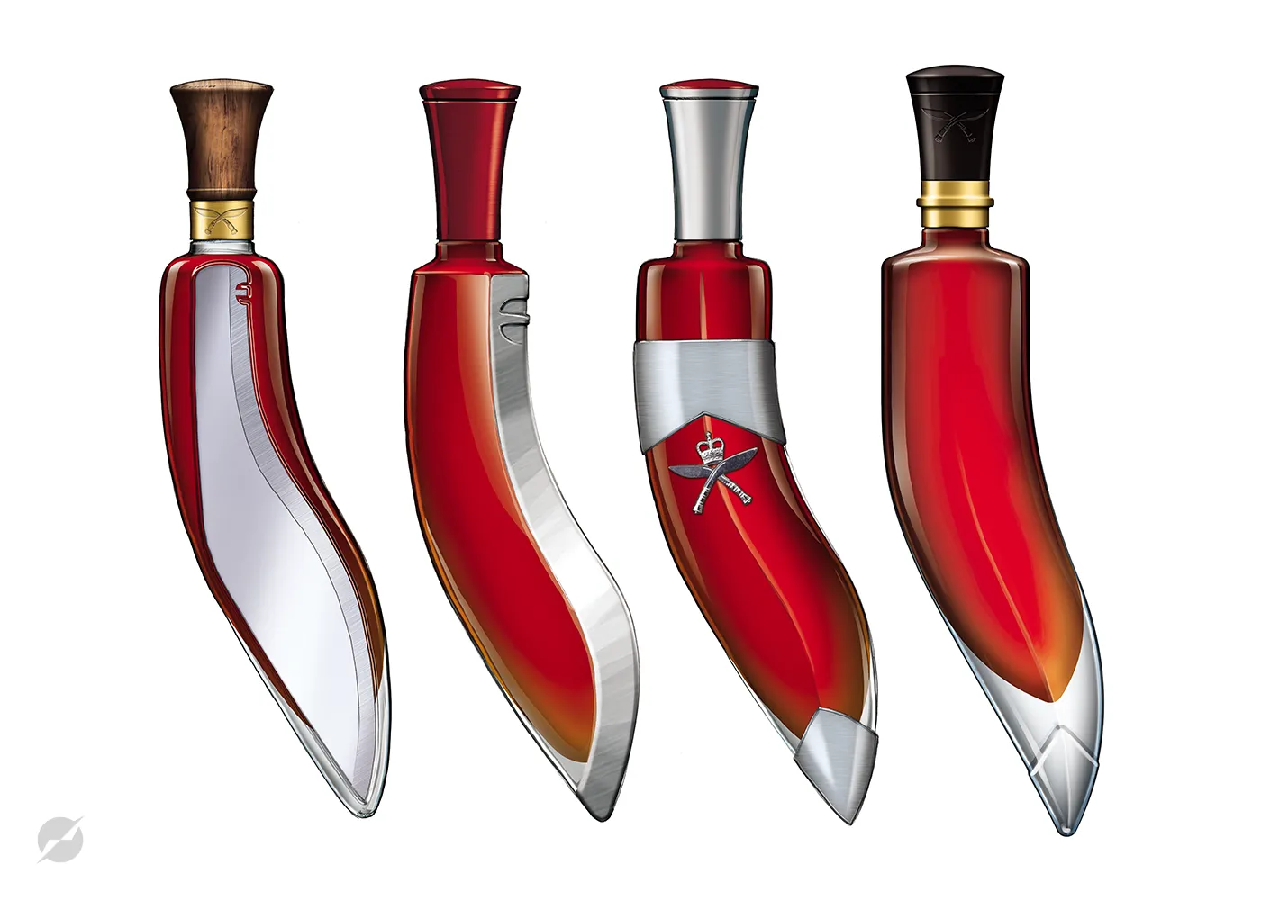 A sculptural tribute to Nepalese heritage. The « Coronation » edition is a high-end structural feat—an iconic, knife-shaped vessel that pushes the boundaries of glass molding. This project involved the development of a complex, asymmetrical bottle inspired by the traditional Khukri blade, integrated into a bespoke structural stand and premium presentation box. The challenge lay in merging ceremonial storytelling with technical precision, creating a disruptive centerpiece that serves as both a luxury spirit and a cultural artifact.